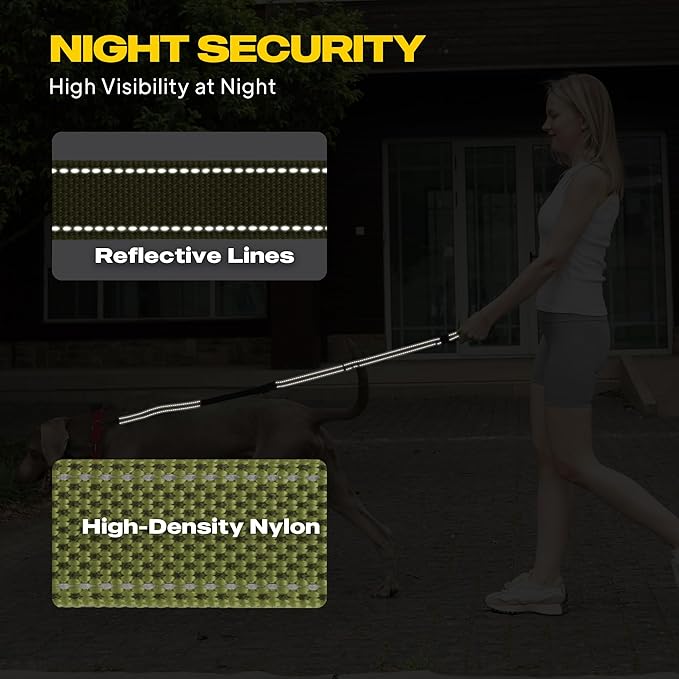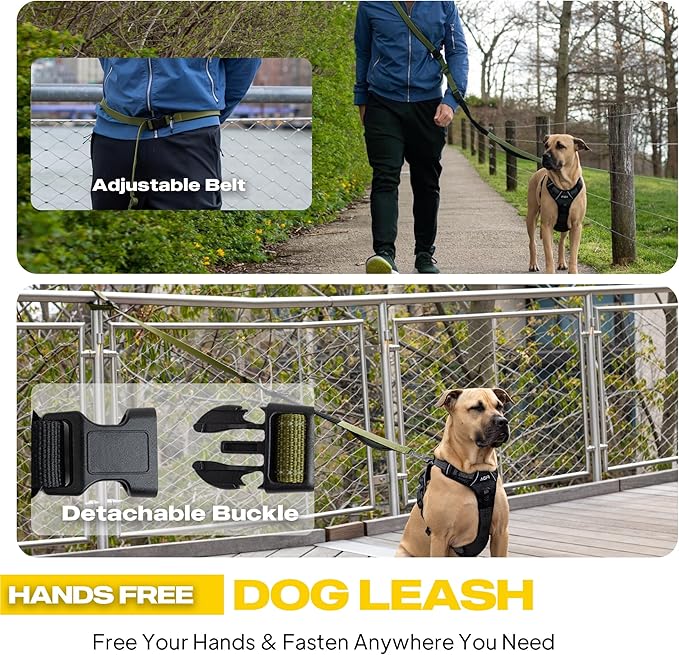 - 【Adjustable Shock-Absorbing Leash】- Extend bungee leash length (4.5ft-7ft) for versatile control. Ideal running leash for dogs with shock-absorbing bungee. Reflective strips enhance dog walking belt night safety