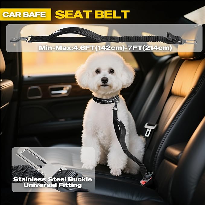 Fida 6-in-1 Hands Free Dog Leash Heavy Duty, Reflective Wasit Corssbody Dog Leash with Car Seat Clip | Adjustable for Running Hiking | Shock Absorbing Bungee, Dual Padded Detachable Handles (Black)