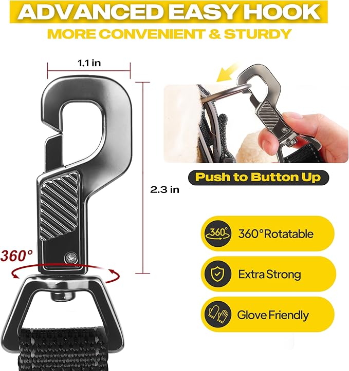 - 【Patented Quick-Hook】- This Dog leash for large dogs features 360° rotating alloy carabiner for instant attachment to harness D-rings, even on excited dogs. Corrosion-resistant heavy-duty clip prevents tangling during high-movement activities