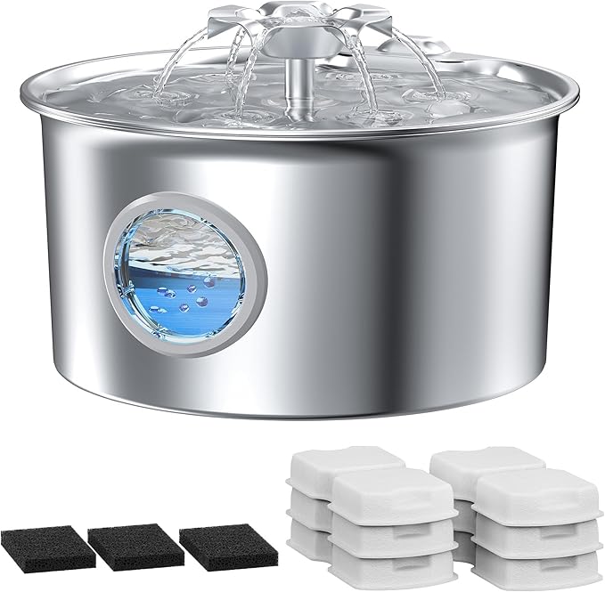 - Reliable Care: Designed with pet well-being in mind, the IHOUONE stainless steel cat water fountain combines durability and convenience. Its 2.6L capacity ensures 5-7 days of fresh water, perfect for busy pet parents. Whether you’re at work or traveling, the cat fountain keeps cats and dogs hydrated effortlessly
