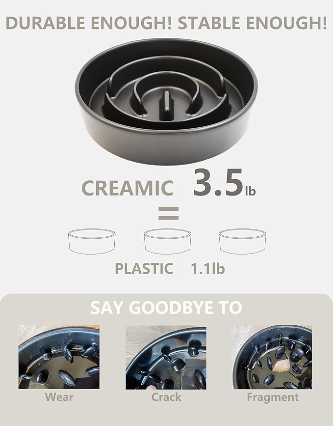 - 【Safe Durable Ceramic Material】Enjoy food safely and healthily—— Plastic dog bowls are often bitten by dogs, resulting in the plastic being ingested by dogs, which is harmful to dogs' health. Our ceramic slow feeder dog bowls are stronger and not easily chewed, that are your best choice.