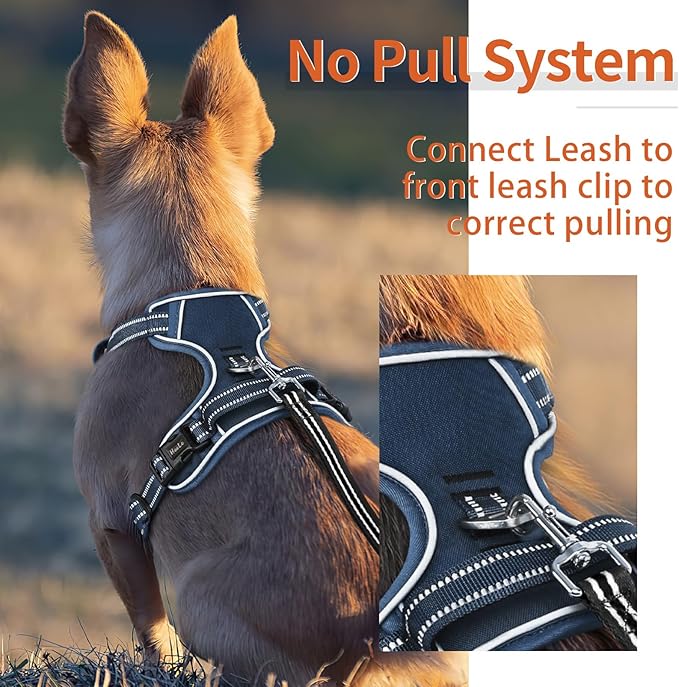 HEELE Dog Harness for Large Dogs No Pull Dog Vest Harness for Large Dog with Soft Padded Handle Reflective for Outdoor Training, Royal Blue, L