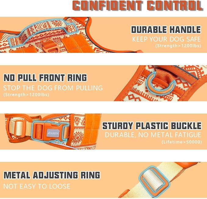 - 【Ultimate Control & SECURITY - Unleash the Power.】 Our no pull dog harness ensures maximum control for your dog with two metal leash attachment points. The front clip provides no-pull control and is great for training, while the back clip is perfect for casual walks or jogging. Walk your dog with confidence and security.