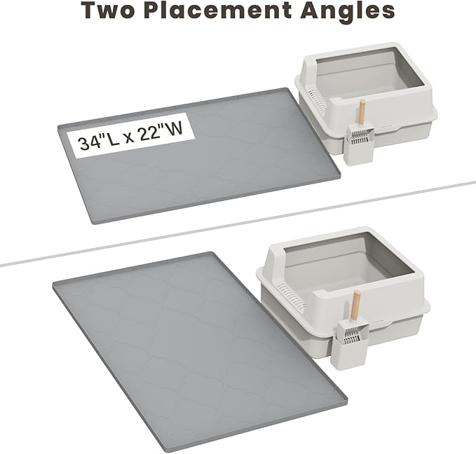 Cat Mat for Litter Box, 34" X 22" Large Silicone Cat Litter Trapping Mat, Easy Clean for Scatter Control, Soft on Kitty Paws, Waterproof, Urine-Proof, Non-Slip Kitty Litter Mat for Floor, Gray