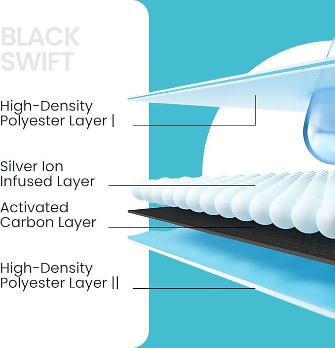 BLACK SWIFT Replacement Filters & Sponges – 12-Pack (6 Filters + 6 Sponges) – 4-Layer Dog & Cat Water Fountain Filter for Indoor Pet Hydration – Only for Black Swift Pet Fountain