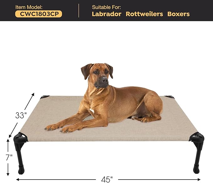 Veehoo Outdoor Elevated Dog Bed Large Sized Dogs, Extra Large Cooling Raised Dog Cots Beds Training Platform Off Ground Hammock with Breathable Mesh, No-Slip Feet, 45"x33", Beige Coffee