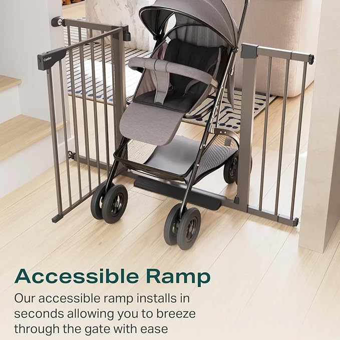 - SAFE & STABLE DESIGN – Features a dual-lock mechanism and sturdy metal construction to create a reliable baby gate / pet gate barrier. Keeps babies and pets safely away from hazardous areas while giving parents peace of mind.