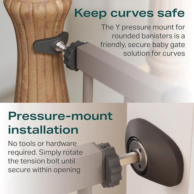 - PRESSURE OR HARDWARE MOUNT – Choose the right installation for your home: pressure mount is wall-friendly and withstands up to 150N pulling force, while hardware mount provides extra security at stair tops, supporting up to 210N pulling force.