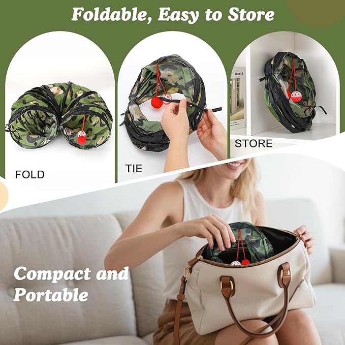 - Interesting Ball and Bell: The cat tunnel toys come with plush ball and bell that you can hang from the side opening, shaking and rattling to make a clear ringing sound that will attract your cat's attention and arouse curiosity, keeping your kitty entertained for long hours!