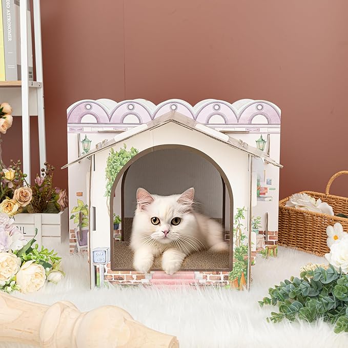 - Cat's Paradise: Cats have an innate love for cardboard boxes and scratching. Our villa cat house combines both of these favorite pastimes, offering a delightful and engaging experience for your cats. Watch them play, explore, and enjoy themselves to the fullest