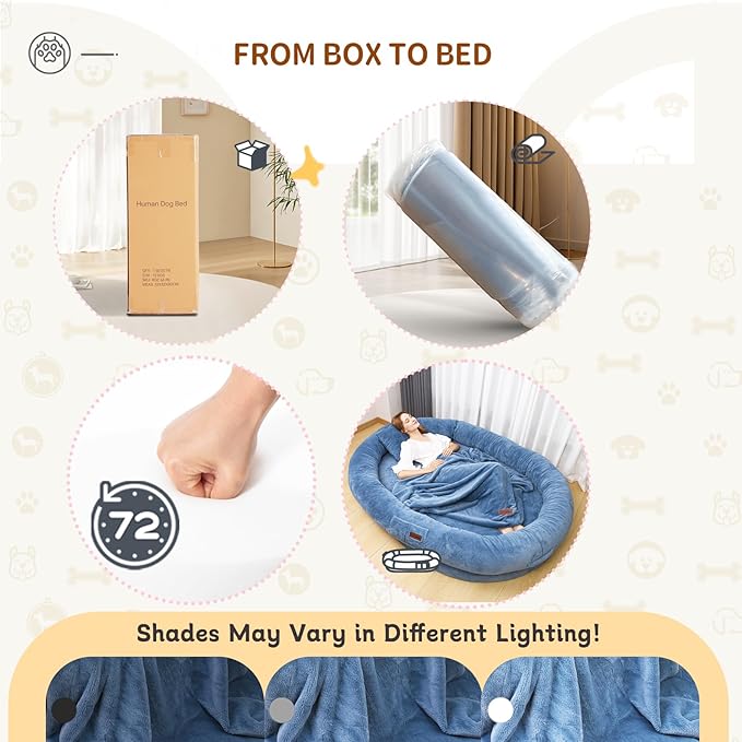 - What Will You Get: Your package includes an orthopedic giant adult dog bed for humans. For a SHORT TIME we're sending a BONUS exquisite workmanship faux short plush blanket of the same material and a plump pillow in a matching color. Experience the unmached comfort of our human dog bed for kids and adults,the perfect fushion of style, durability, and relaxation