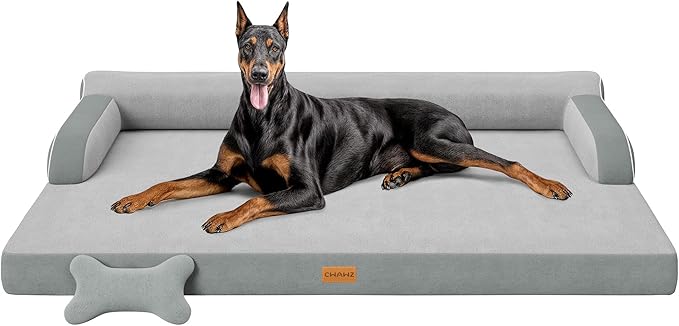 XXL Orthopedic Dog Bed, Big Dog Bed for Large Dogs, Dual-Sided Pet Cooling Beds with Memory Foam Washable Cover Nonslip Bottom, Waterproof Pet Couch with Bolsters, Light Grey