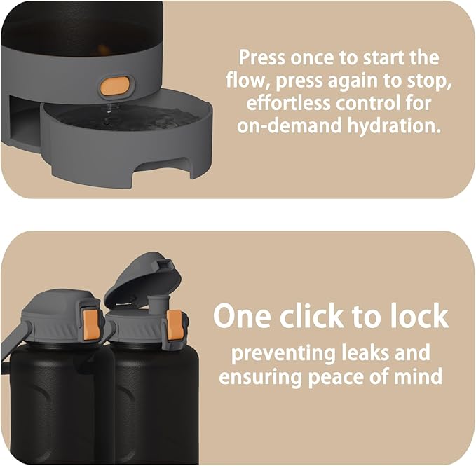 - Dual Hydration for You & Your Pet – Smart 2-in-1 Design:Enjoy hands-free hydration on hikes, camping trips, and road trips with this 50oz leakproof water bottle. The human hydration spout lets you drink easily, while the built-in pet bowl keeps your dog hydrated—perfect for outdoor adventures, parks, and travel.