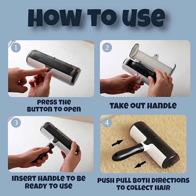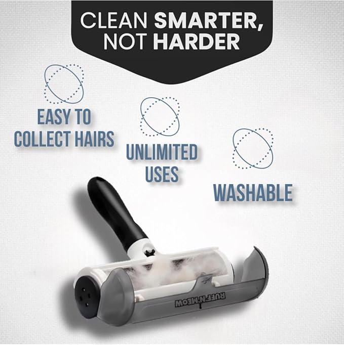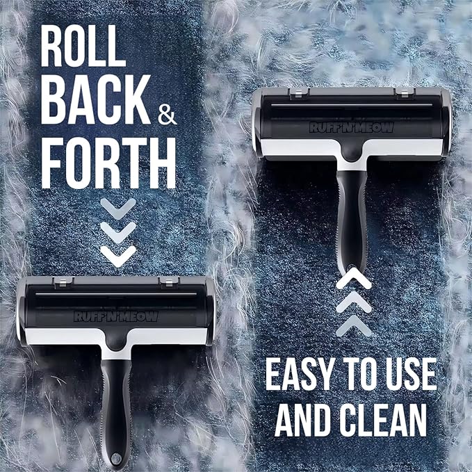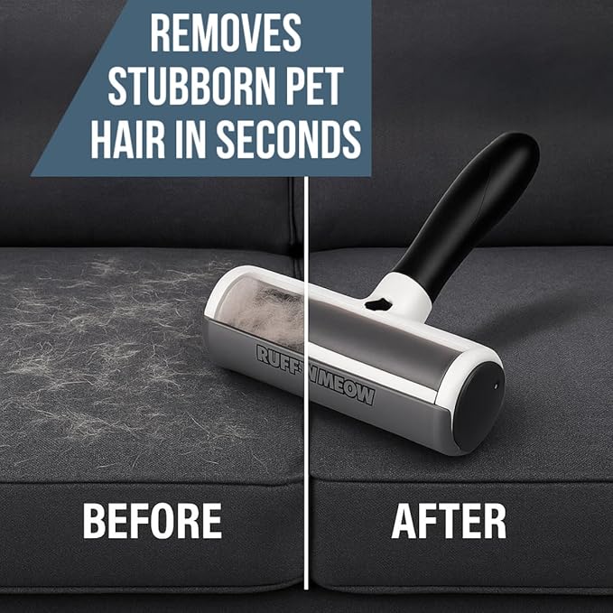 - Effective Pet Hair Remover – Instantly lifts dog and cat hair from carpets, furniture, bedding, and car seats with the Ruff’N’Meow Pet Hair Roller—no sticky sheets or vacuum needed!