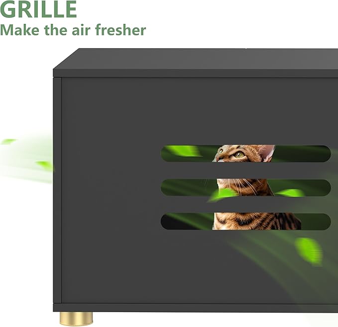 - Odor-Reducing Ventilation: The litter box cabinet rear ventilation grille ensures continuous airflow to neutralize odors and control humidity. Your cat enjoys a fresher, healthier space, while your home stays pleasantly odor-free.