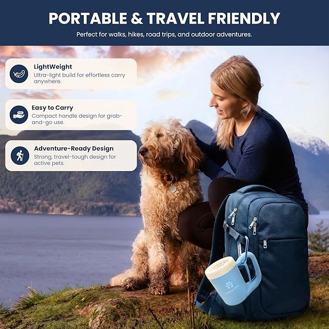 - Mess-Free Cleaning for Muddy Paws Anywhere :- Keep your home clean after walks. Use our portable dog paw cleaner to remove dirt, mud, or sand quickly and easily — ideal for indoor use, hikes, parks, or rainy days.