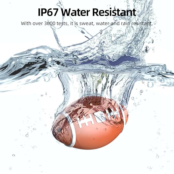 - Lightweight and Waterproof: The unique football styling gives it a smaller and lighter look, weighing just 0.3 oz. The small size comes with a key ring suitable for all kinds of dog collars. The dog tracker design reaches the IP67 waterproof level, so there is no need to worry about the dog playing on rainy days or by the water. The lightweight design makes your dog more comfortable outdoor activities.