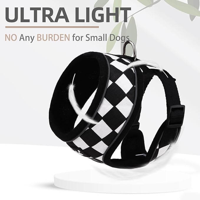 PUPTECK Soft Mesh Dog Harness and Leash Set Pet Puppy Cat Comfort Padded Vest No Pull Harnesses, Checkered Black&White, XS