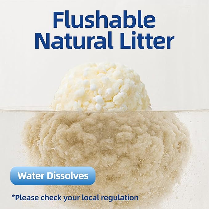- 【Very Easy to Clean】Due to its outstanding clumping ability, cat litter is not easily loose after clumping and can be easily removed. And this cat litter can dissolve in water, so it can be safely flushed into the toilet.