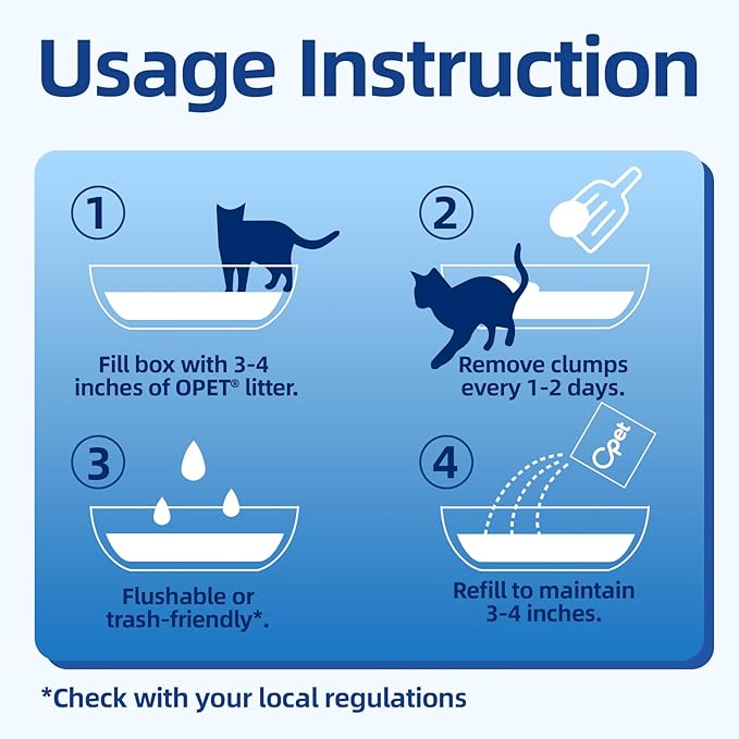 - 【100% Natural Ingredient】OPET Cat Litter adopts 100% natural corn and cassava starch, eco-friendly for your cats and family. Thanks to its natural and non-irritating properties, this plant-based natural litter ensurs the health of your cats and especially for your little kittens.