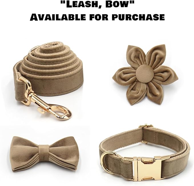 Velvet Personalized Dog Collar with Name - Customizable Dog Collar with Quick Release Metal Buckle - Leash and Bow Tie Available (Warm Gray, XS)