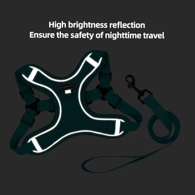 - SAFE AND USEFUL - This soft harness with reflective leash is great for night walks, making our dogs stand out and keep them visible and safe. The sturdy padded handle on the top makes it easy to grab the dog quickly in case of emergency. It is fabulous to help dogs climb stairs and hook a seat belt through it for car rides.