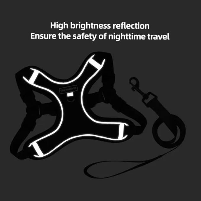 - SAFE AND USEFUL - This soft harness with reflective leash is great for night walks, making our dogs stand out and keep them visible and safe. The sturdy padded handle on the top makes it easy to grab the dog quickly in case of emergency. It is fabulous to help dogs climb stairs and hook a seat belt through it for car rides.
