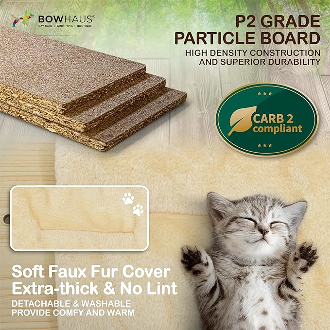 - Sturdy, High-Quality Construction: Made with P2-grade particleboard and a reinforced base, this wooden cat tree is built to last; strong support posts ensure stability, even with multiple cats; providing an ideal environment for your feline friends