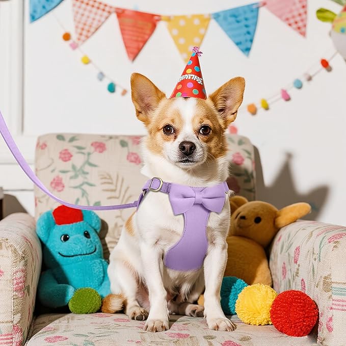 - Stylish Design: Three removable bows and five solid bright color options let you customize your pup's look. The fashionable pet harness transitions seamlessly from daily walking to special events like Wedding,Birthday, Holiday Gifts,Photo Shot—making your furry friend the center of attention