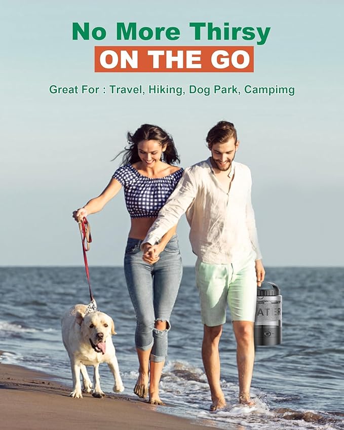 - The Perfect Dog Travel Accessory – Comes with a carrying strap, easy-grip handle, and carabiner, fitting seamlessly into dog hiking gear, dog camping gear, and dog travel accessories. Ideal as a water bowl for dogs no spilling large dogs or paired with a dog bowl mat waterproof, this travel dog water bottle ensures your pet is hydrated, healthy, and happy on every adventure.
