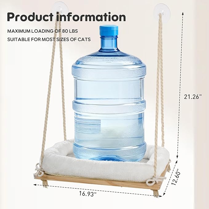 - Safe 80lbs Weight Capacity: Cat window hammock features four upgraded heavy-duty suction cups, significantly enhancing the stability of the window bed. These suction cups have passed rigorous load-bearing tests in lab conditions: they securely adhere to window glass surfaces and provide firm support even during vigorous play, with a maximum weight capacity of 80 lbs. (For non-specialty load-bearing glass, sustained weights over 60 lbs are not recommended, as it may cause glass breakage.)