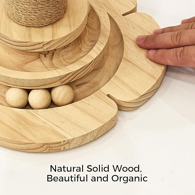 - 4-in-1 Design: The natural woven sisal post is perfect for your cat to scratch; the two-layer solid wood ball track stimulates curiosity and satisfies your kitten's natural instincts. The interactive feather toy made from natural materials provides endless fun, while the sisal ball offers multi-level play. This design is suitable for multiple cats to enjoy together.