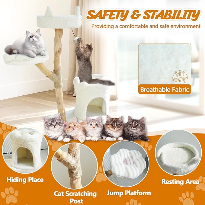 - [Upgrade Health Materials]: This cat tree now uses high-quality solid wood, natural sisal, and lint. These materials are environmentally friendly, healthy and safe, making them more friendly to the health of cats.Products that have undergone odor free treatment can reduce irritation to cats' noses and make them more fond of using them.