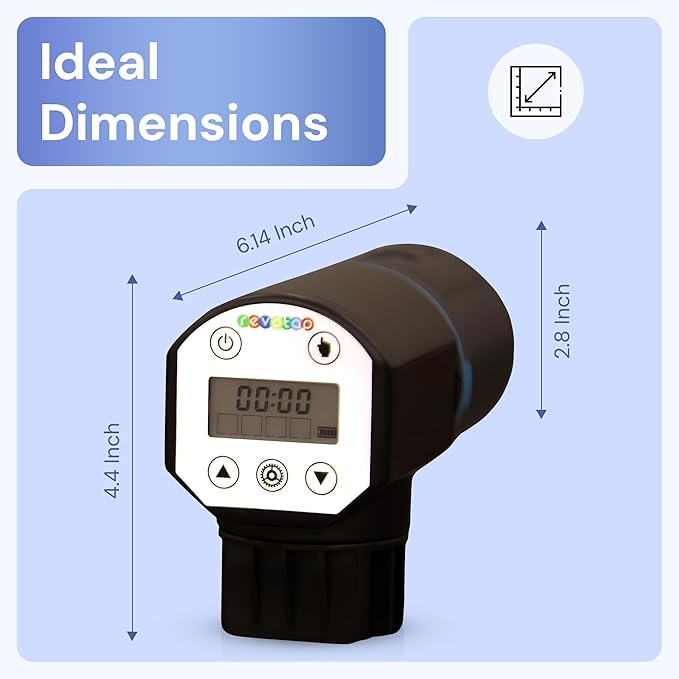- Smart Timer with LCD Display – Set and forget with the built-in timer and easy-to-read LCD. Whether you're using it for a home aquarium, fish tank feeder, or during travel, the clear controls make scheduling effortless. Perfect for both automatic feeder for fish and beginner aquarists alike.