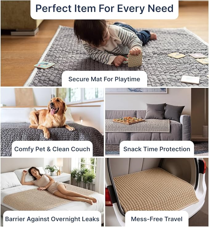 - MULTI-USE COVERAGE: L-size blanket is perfect for protecting seats from spills, stains, and everyday mishaps. Use it as a furniture cover for your couch or car seat, a cozy play area on the floor, a kennel, or a portable mat to travel with pets.