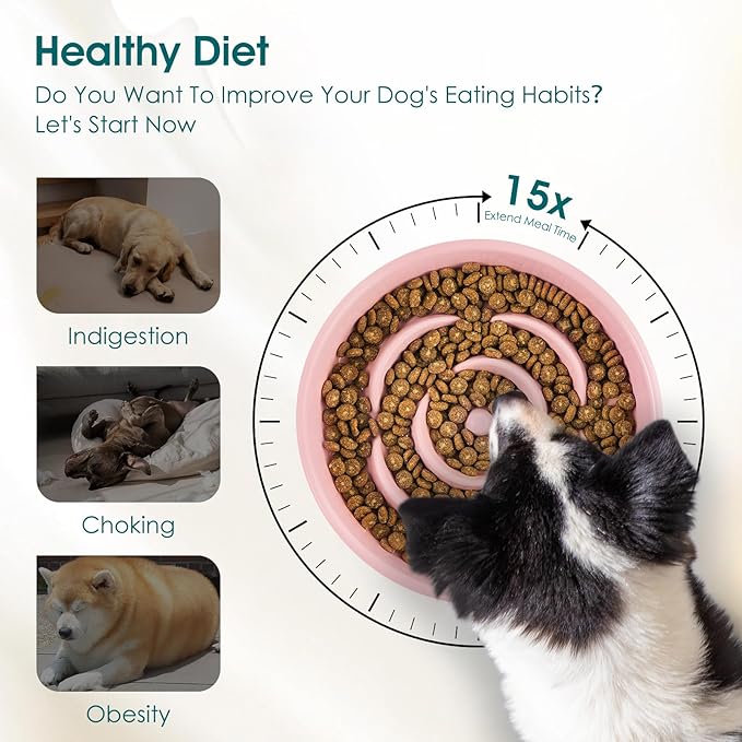 - 15X Slower Eating: vancasso slow feeder dog bowls clever design with ridges and a maze pattern slows down eating by 15X, turning meals into a fun, engaging challenge. Helps prevent indigestion, choking, and obesity while keeping your dog mentally stimulated. A smarter, healthier way to eat!