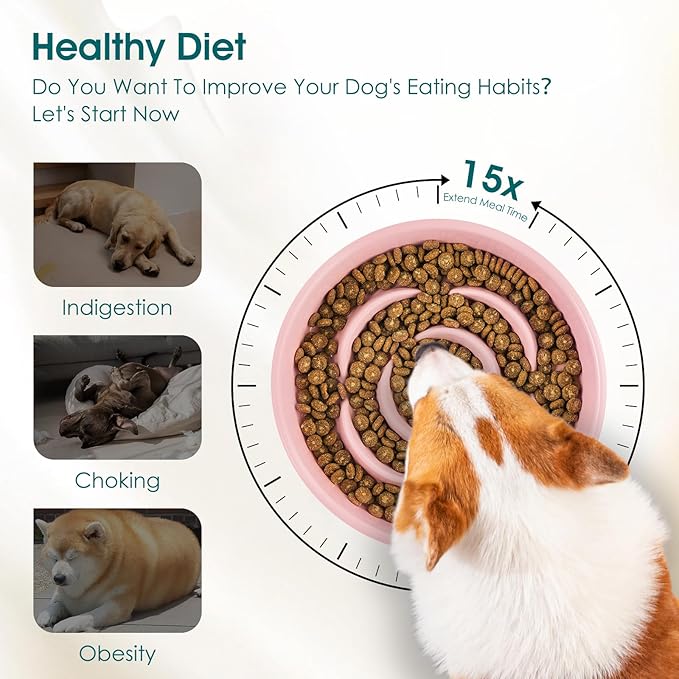 - 15X Slower Eating: vancasso slow feeder dog bowls clever design with ridges and a maze pattern slows down eating by 15X, turning meals into a fun, engaging challenge. Helps prevent indigestion, choking, and obesity while keeping your dog mentally stimulated. A smarter, healthier way to eat!