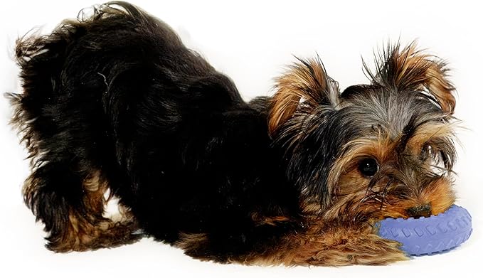 - Playology's Dual Layer Ring Chew Toy: This extra durable dog toy is the small dual layer dog ring featuring a special 2-layer design to withstand aggressive chewers and keep them entertained. This irresistible Blueberry scented toy keeps your dog busy for hours of entertainment through chewing, rolling, ring toss, and tug of war. These heavy duty rubber dog toys are ideal for small breeds (up to 25 lbs). Durable enough to withstand play indoors and outdoors, this small dog toy is an essential item to entertain your K9 companion.