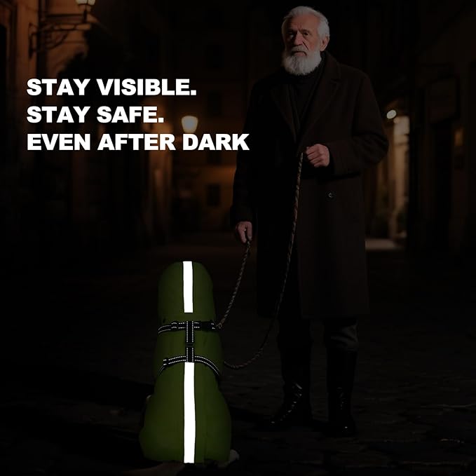 - REFLECTIVE STRIPS & DETACHABLE EVA HOOD FOR VISIBILITY - Reflective strips on the back keep your dog visible during evening walks. The detachable hood features a transparent EVA brim that won’t block your dog’s view - ideal for walks, travel, or unexpected showers. This waterproof raincoat for dogs combines protection and visibility in all conditions.