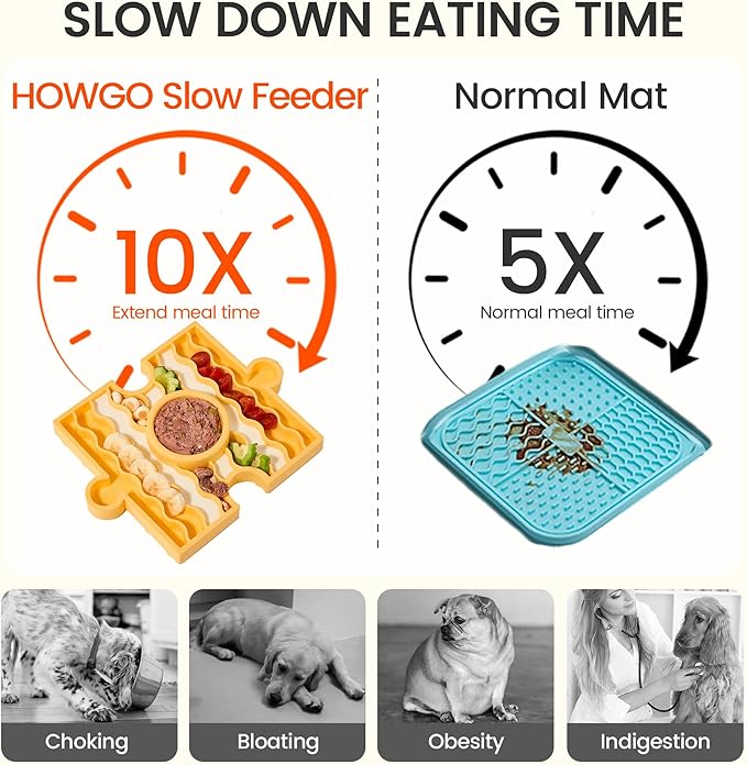 HowGo Puzzle Slow Feeder Lick Mat for Dogs, 38+ Suction Cups | Non-Slip Heavy Duty Maze Enrichment Bowl BPA-Free Silicone | Reduce Boredom Anxiety Free Combination (1PC, Yellow)