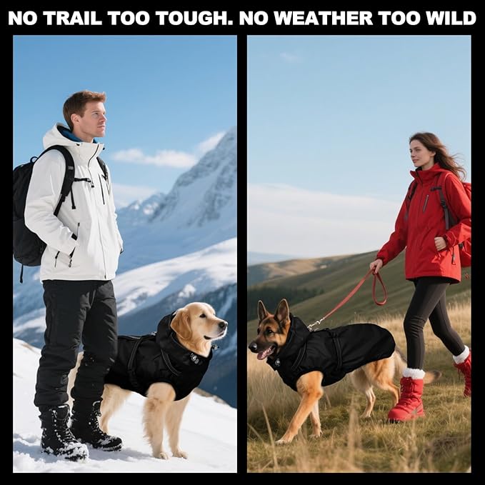 - WATERPROOF WITH BUILT-IN HARNESS FOR RAINY WALKS - Crafted from 100% polyester waterproof fabric, this dog rain jacket is lightweight yet highly water-resistant - perfect for keeping your pup dry. It features a built-in adjustable harness, so you can simply clip on a leash and head out - no extra gear needed. The secure back zipper ensures quick on and off. Ideal for rainy strolls or post-bath walks with Labrador Retrievers, Golden Retrievers, and other large dogs.