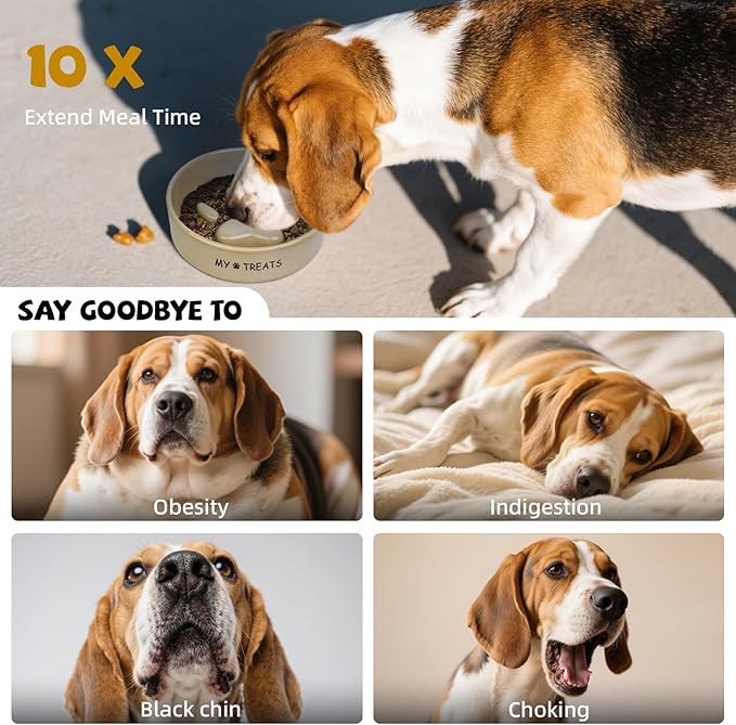 - 【Slow Down Eating Up to 10X】 Our ceramic puzzle slow feeder comes in two designs: paw print shaped and paw print. This cute design can slow down your dog's eating speed, prevent bloating, reflux, and obesity. If it's a plastic bowl, dogs can easily bite the bowl and accidentally eat plastic, which is not conducive to their health. If you choose our ceramic bowl, you don't have to worry about this problem!