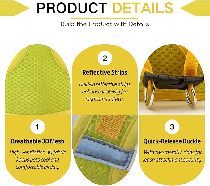 - Dog Harness with Dual Adjustment Design - Our escape proof dog harness offers double security and adjustability with back buckle straps and a hook-and-loop closure. Ensures a snug fit for every puppy/cat harness experience while maximizing comfort for your furry friend.