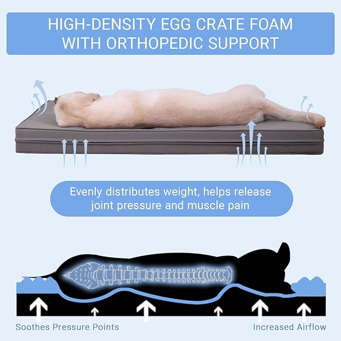 - ORTHOPEDICAL SUPPORT: The Vonabem Orthopedic Dog Bed is filled with high-density egg cage foam. It provides adequate support for the spine, helps release joint pressure, relieves muscle pain, and promotes deep sleep, making it a great choice for older dogs or uncomfortable pets