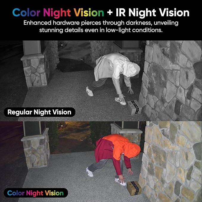- More Safety at Night with Color Night Vision + Spotlight Siren - Enhanced IR and spotlight illumination deliver full-color nighttime footage, while the built-in siren adds extra security as a proactive outdoor security camera.