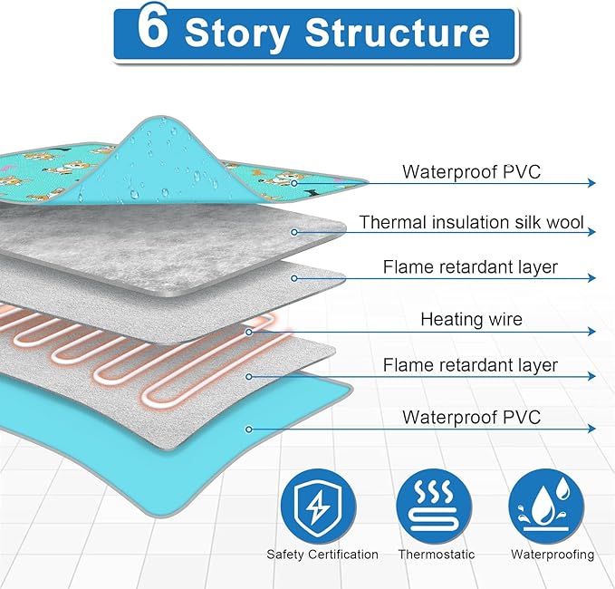 - Upgraded Configuration: Puppy heating pad 28x18 inches for litter boxes (for newborn kittens and puppies, adult cats) + Smart thermostat with automatic shut-off. Reinforced interface + wire rope for more safety.