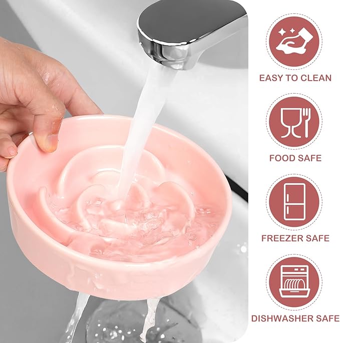 - 10-Second Clean: The ceramic cat slow feeder bowl ultra-smooth glaze rinses spotless instantly! Hand-wash or dishwasher-safe—both remove 100% of wet food residue. Spend saved minutes cuddling your pet instead of scrubbing. Stays odor-free for tomorrow's meal.