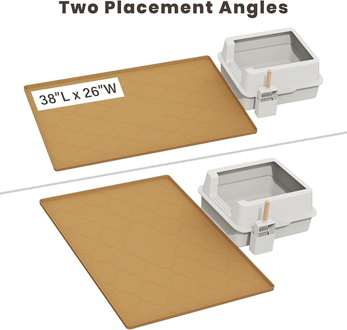 Cat Mat for Litter Box, 38" X 26" Silicone Cat Litter Trapping Mat, Easy Clean for Scatter Control, Soft on Kitty Paws, Waterproof, Urine-Proof, Non-Slip Kitty Litter Mat for Floor, Brown