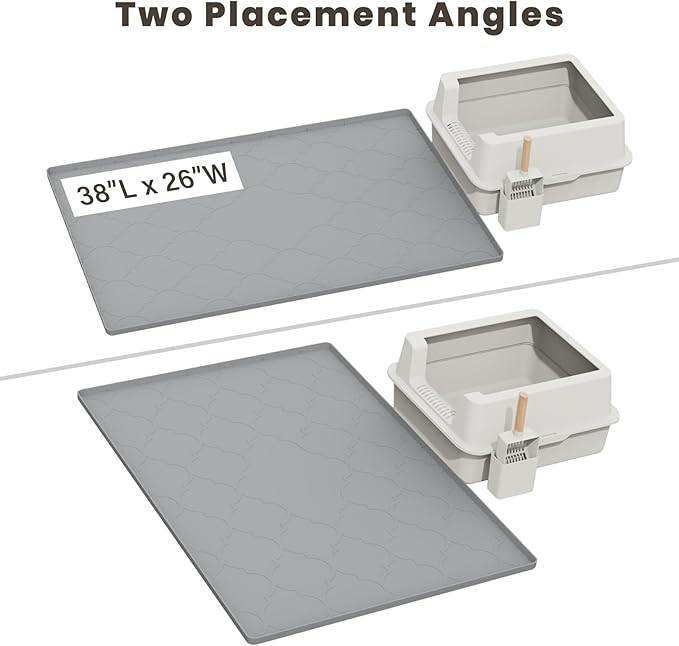 Cat Mat for Litter Box, 38" X 26" Large Silicone Cat Litter Trapping Mat, Easy Clean for Scatter Control, Soft on Kitty Paws, Waterproof, Urine-Proof, Non-Slip Kitty Litter Mat for Floor, Gray