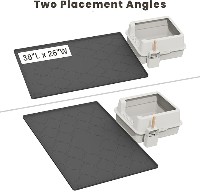 Cat Mat for Litter Box, 38" X 26" Large Silicone Cat Litter Trapping Mat, Easy Clean for Scatter Control, Soft on Kitty Paws, Waterproof, Urine-Proof, Non-Slip Kitty Litter Mat for Floor, Black